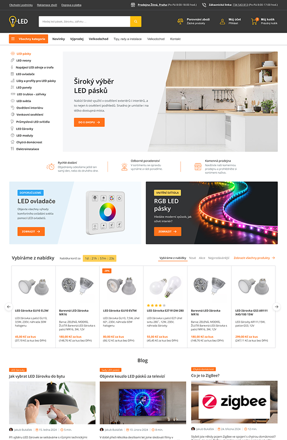 For a leading company in LED lighting we implemented a B2B and B2C e-shop integrated with ERP systems MyWAC, Helios and K2. The site includes calculators, configurators, a custom blog solution and other custom functionalities primarily for B2B customers.
